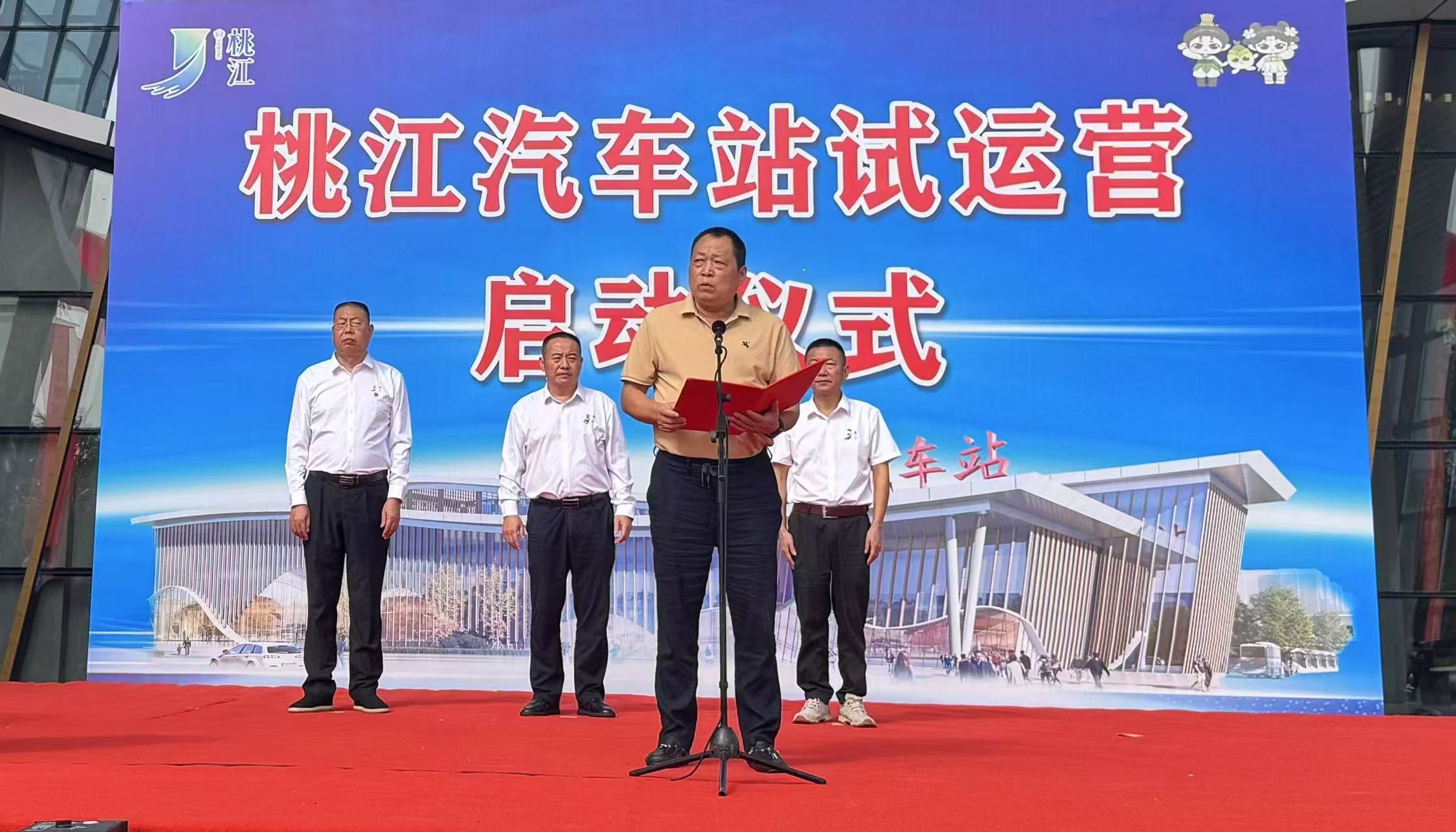 启动仪式由桃江县政府办党组成员、副主任曾小平主持;县交通运输局党组书记、局长胡鹤鸣和益阳湘运集团股份有限公司董事长郭跃明分别致辞;桃江县委常委、常务副县长熊跃明宣布该站正式启动,并与郭跃明一起为车站揭牌。