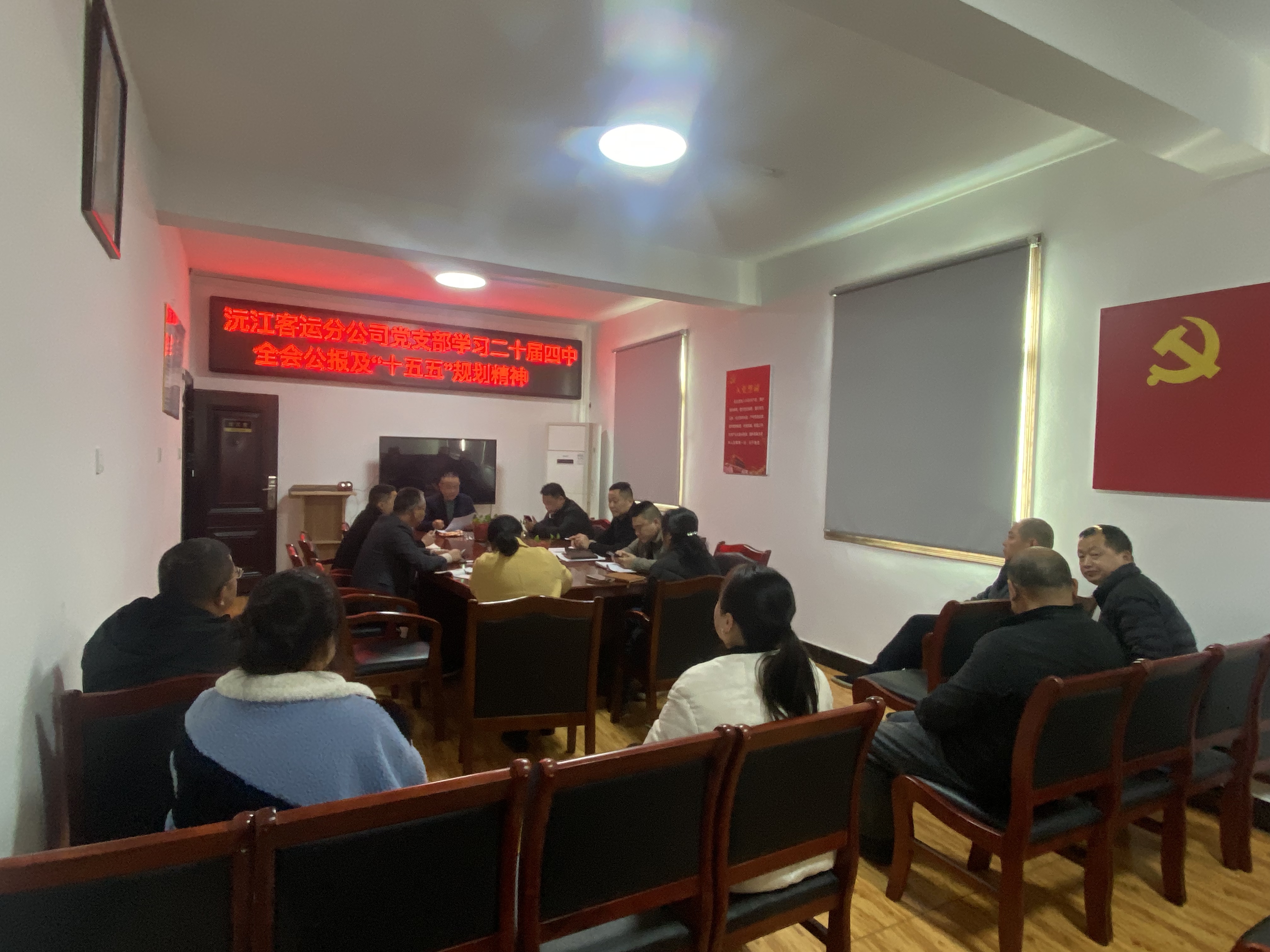 11月27日下午,中共沅江客运分公司支部委员会书记李车组织全体党员认真传达学习了党的二十届四中全会精神及“十五五规划”精神,并组织党员结合岗位交流了学习心得。